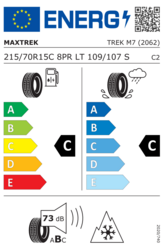 Maxtrek Trek M7 215/70 R15C 109/107S 8PR 3PMSF plne vyhovuje požiadavkám na bezpečnosť a ovládateľnosť vodičov sedanov, kompaktných áut a minivanov. Jeho posilnený smerový profil zabezpečuje veľmi dobrú priľnavosť na zasnežených alebo ľadových cestách. Jeho mnohé drážky zabezpečujú stabilitu na mokrých vozovkách. Jeho zmes gúm bola študovaná na zníženie odporu pri valení a na vytvorenie pneumatiky s dobrou životnosťou. Certifikovaný 3PMSF, tento pneumatika zvládne zimu za rozumnú cenu.